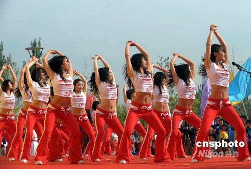 圖:北京民眾慶祝奧運(yùn)倒計(jì)時(shí)100天(3)