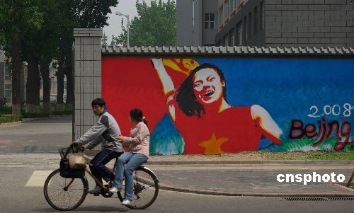 圖:首面奧運文化墻在京街頭亮相(2)