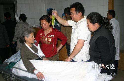 八十多歲的程玉華是此次事故受傷乘客,據(jù)介紹,她從淄博火車站乘坐煙臺(tái)到徐州的五0三四次列車,上車不久就發(fā)生了事故。圖為左臂骨折正在當(dāng)?shù)蒯t(yī)院手術(shù)室外等待手術(shù)治療的程玉華老人。胡洪林 攝