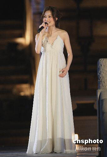 香港藝人容祖兒現(xiàn)場獻歌。中新社發(fā) 趙振清 攝