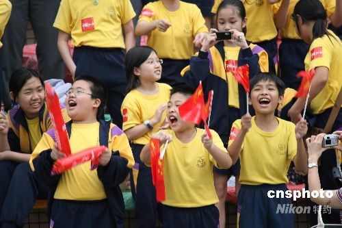 圖為在沙田馬場出席“萬眾歡騰迎圣火”大型社區(qū)慶祝活動的小朋友們。中新社發(fā) 武仲林 攝
