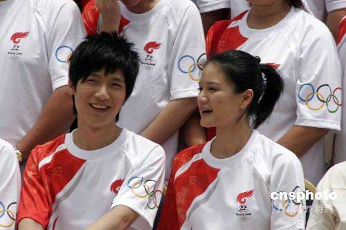 陳楚生和吳英娜到達(dá)三亞參加圣火的傳遞。中新社發(fā) 尹恩彪 攝