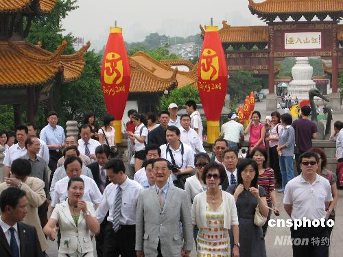 5月5日,中國國民黨榮譽主席連戰(zhàn)一行參觀了武漢黃鶴樓。中新社發(fā) 艾啟平 攝