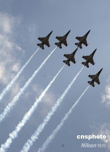 美國(guó)“雷鳥(niǎo)”飛行隊(duì)特技表演驚心動(dòng)魄(3)