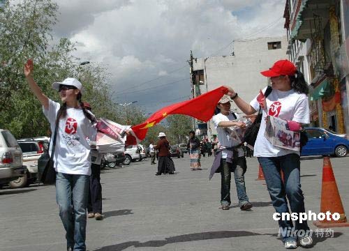 圖:圣火登珠峰 拉薩街頭喜相迎 (2)
