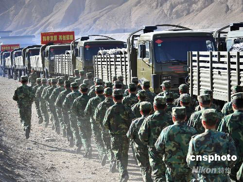 5月10日清晨,赴青藏線執(zhí)行物資運輸任務(wù)的中國汽車部隊正規(guī)化出車。中新社發(fā) 吳蘇琳 攝