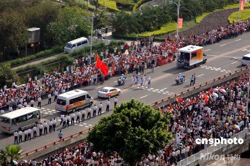 5月11日下午,北京奧運(yùn)火炬在福州最美的江濱大道進(jìn)行傳遞,現(xiàn)場盛況空前。 中新社發(fā) 王東明 攝