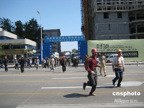 5月12日14時(shí)33分,河南洛陽發(fā)生有感地震,房屋和電燈搖擺明顯,眾多市民紛紛上街躲避,目前尚未發(fā)現(xiàn)人員和財(cái)產(chǎn)損失,震源和等級(jí)尚不明確。中新社發(fā) 鞏衛(wèi)東 攝