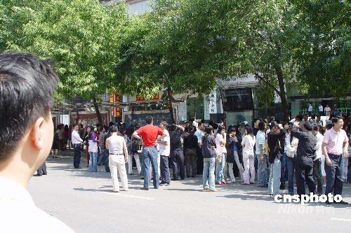 2008年5月12日下午,河南省會(huì)鄭州受到四川地震波及,該市農(nóng)業(yè)路上站滿了疏散的市民。中新社發(fā) 李志全 攝