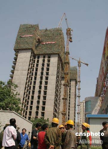 西安感覺強(qiáng)烈震感,一個(gè)正在施工的建筑工地吊塔在高空被震斷,操作員當(dāng)場摔下身負(fù)重傷,其他建筑工人被緊急疏散。目前傷員正在醫(yī)院搶救,尚未脫離生命危險(xiǎn)。中新社發(fā) 王振001 攝