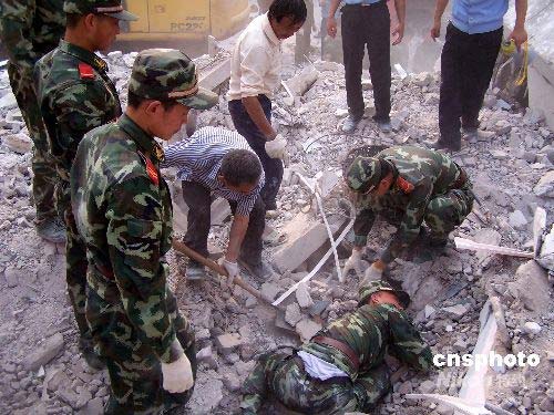 圖:重慶武警成功搜救坍塌小學(xué)11名師生(4)