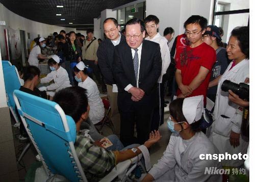 清華大學學子為地震災區(qū)獻血 校長顧秉林慰問同學