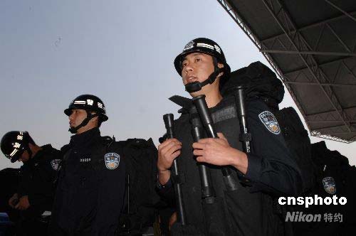 5月13日中午12時,天津公安局特警總隊200名特警隊員攜帶破拆工具、地高壓氣墊手動救援工具組照明及通訊等工具在天津國際濱海機(jī)場登機(jī),13時44分乘國際航空公司包機(jī)飛赴四川,當(dāng)天下午4時46分抵達(dá)四川成都,按照公安部的指令即將奔赴北川重災(zāi)區(qū),投入到維護(hù)災(zāi)區(qū)社會治安和搶險救災(zāi)工作中。中新社發(fā) 蘇振強 攝