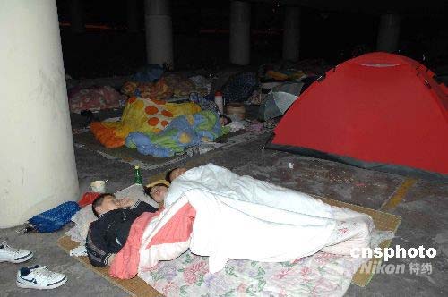 圖:成都地震災(zāi)區(qū)民眾露宿街頭立交橋下(2)
