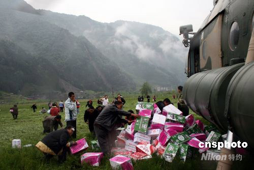 組圖:首架直升機(jī)成功降落汶川縣城送去救災(zāi)物資
