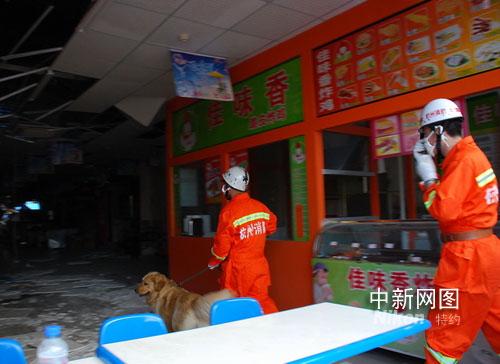 今天,浙江消防搶險救援隊進(jìn)行四川地震災(zāi)區(qū)現(xiàn)場,圖為搶險救援隊帶領(lǐng)搜救犬進(jìn)入現(xiàn)場搜救。作 者:李玉飛