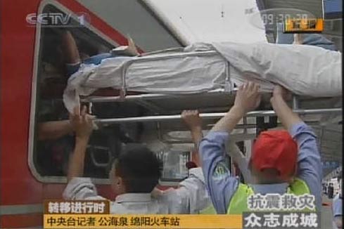 圖:綿陽火車站轉(zhuǎn)移大批傷病員(2)