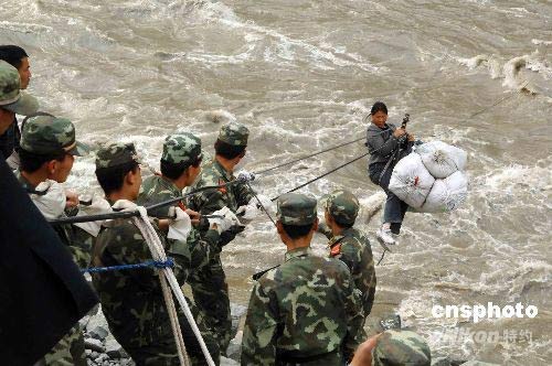 武警官兵在汶川岷江營救轉(zhuǎn)移地震災(zāi)民