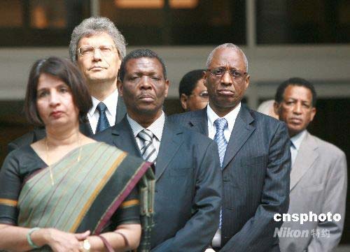 世界各國(guó)駐華使節(jié)前往中國(guó)外交部,沉痛吊唁四川大地震罹難者。中新社發(fā) 廖文靜 攝
