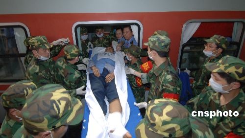 2008年5月19日,按照鐵道部的統(tǒng)一部署,成都鐵路局開行首趟運(yùn)送地震災(zāi)區(qū)受傷群眾專列,19日1O:20從綿陽發(fā)車,當(dāng)日16:57到達(dá)重慶北站。運(yùn)送了206名地震受傷群眾及家屬前往重慶接受治療。該次專列專列車次為57005/6/5次路用傷員列車,編組19輛,全部為25G空調(diào)硬臥車。其中硬臥15輛并配備餐車及行李車!