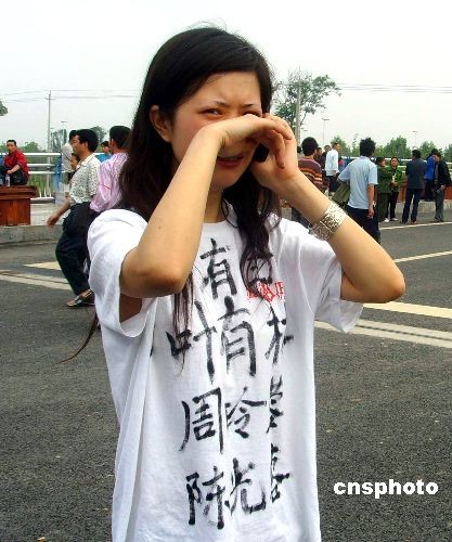 綿陽(yáng)市抗震救災(zāi)最大的救助點(diǎn)九州體育館容納了2萬(wàn)多名來(lái)自北川、安縣等地的災(zāi)民, 5月15日上午,北川地震災(zāi)民家屬葉婷焦急地尋找親人。 霍潺 攝