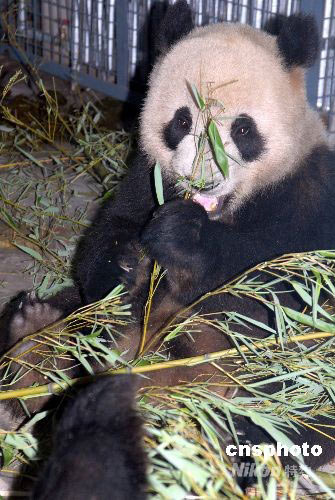 5月24日,來自四川臥龍的8只大熊貓平安抵達(dá)北京動物園,開始新的生活。此次進(jìn)京的8只奧運大熊貓,是今年3月21日啟動的“2008四川臥龍大熊貓奧運北京行”投票評選活動中,由廣大網(wǎng)民從16只大熊貓里選出來的。這8只熊貓,雌雄各半,現(xiàn)在的年齡都在1歲9個月之間,屬亞成體,正是最活潑可愛的年華。 中新社發(fā) 羅小韻 攝