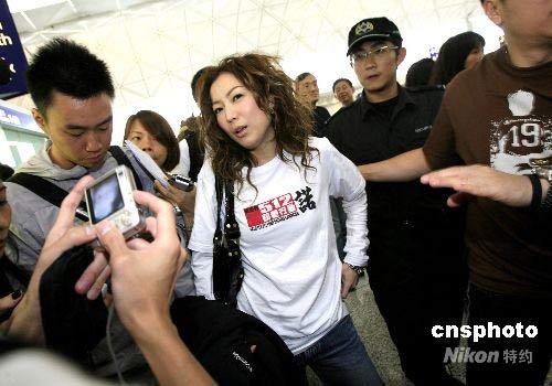 鄭秀文出現(xiàn)在啟程赴四川地震災(zāi)區(qū)現(xiàn)場。中新社發(fā) 王麗南 攝