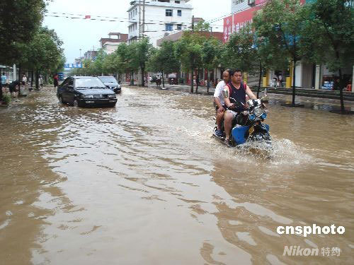 一片汪洋的上栗縣城。中新社發(fā) 優(yōu)中 攝