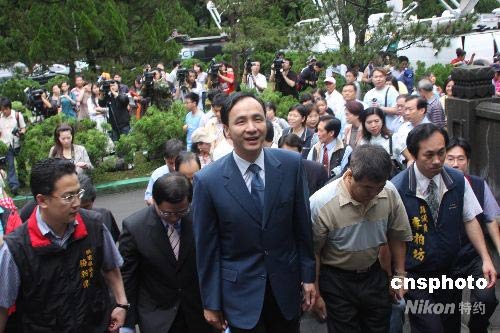 圖為桃園縣長朱立倫(右三)率眾進(jìn)入慈湖陵寢。中新社發(fā) 耿軍 攝
