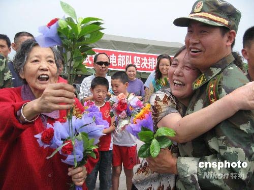 綿陽(yáng)市民熱烈歡迎唐家山堰塞湖搶險(xiǎn)官兵