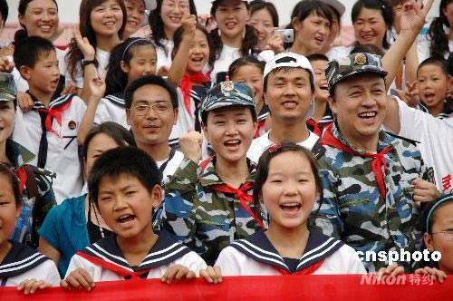宋祖英呂繼宏等明星和四川綿竹海軍小學(xué)學(xué)生共度六一