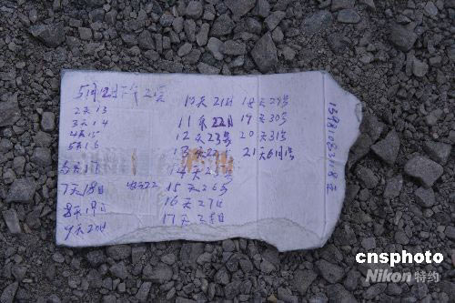 圖為礦工等待救援的日期紀(jì)錄。 中新社發(fā) 李磊 攝