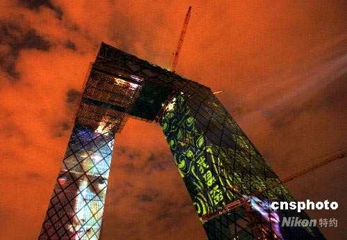 圖:巨型投影扮靚央視新址 體育精神鼓舞中國(guó)加油 (2)