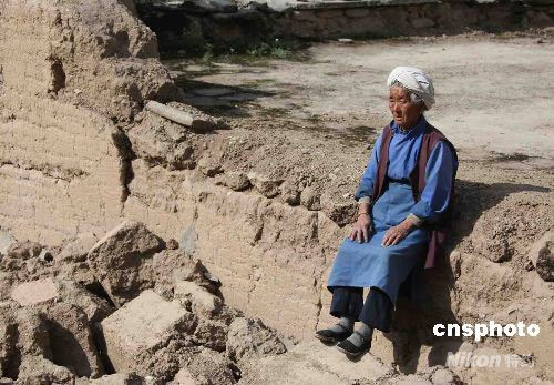 圖:靜坐在倒塌房屋前的羌族老人