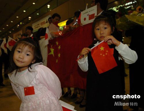 圖為兩名正在成田機場等待迎接日本醫(yī)療隊的中國小女孩。中新社發(fā) 朱沿華 攝