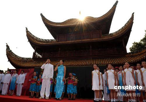 圖:湘人齊誦《岳陽(yáng)樓記》送“祥云”