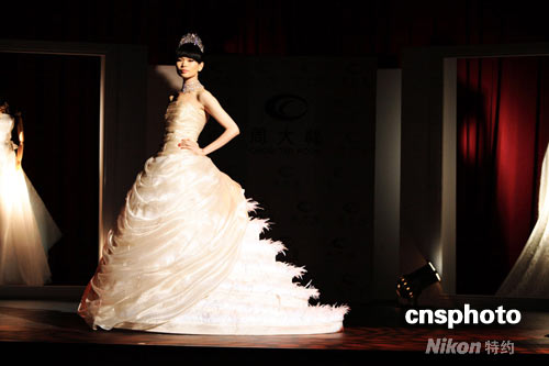 周大!拔艚.飾金”珠寶藝術展覽近日在香港文化博物館劇院舉辦了隆重的揭幕典禮。代言人呂燕與樂基兒、林嘉綺三位中港臺頂尖名模,身著奧斯卡美術指導獎得主葉錦添先生設計的配套婚紗,傾情演繹了周大福最新婚嫁珠寶作品。葉錦添先生從各自獨特的角度,通過婚嫁首飾與婚紗這兩種重要的婚禮元素,闡述著他們對于現(xiàn)代女性復雜而多變的情感世界的理解與領悟,表達出新人對美麗與幸福的無限憧憬與期冀。 中新社發(fā) 楊影懿 攝