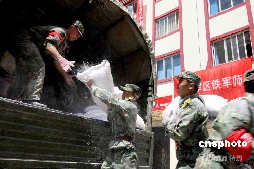 鐵軍救災物資運輸隊的車隊向理縣藏、羌族居住的高原山寨運送救災物資。中新社發(fā) 曾憲平 攝