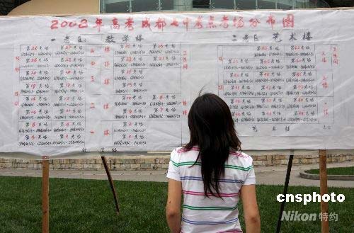 四川成都,前來熟悉高考考場的同學(xué)正在觀看考場分布圖。中新社發(fā) 黃榮 攝
