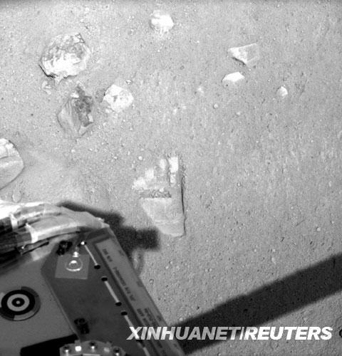 “鳳凰”號探測項(xiàng)目經(jīng)理戴維·斯潘塞6月1日說,機(jī)械臂與火星的第一次接觸為之后的采集土壤和向其他科學(xué)儀器傳送土壤樣品做好了準(zhǔn)備。由于機(jī)械臂形狀特殊,其在火星留下的“第一痕”類似于人類腳印。 新華社/路透