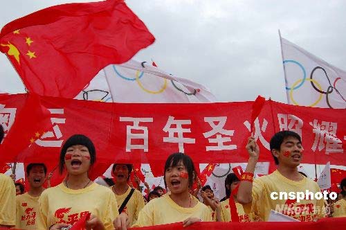 圖:革命老區(qū)廣西百色熱情迎接奧運(yùn)圣火 (4)