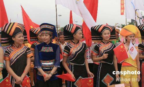 圖:壯族美女喜迎奧運圣火