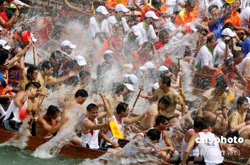 國(guó)際龍舟錦標(biāo)賽慶祝端午佳節(jié) 眾人打水仗