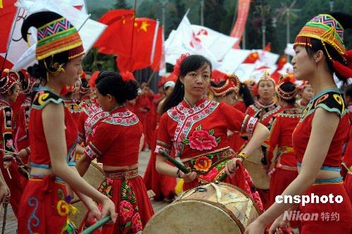 圖:云南各民族群眾歡慶奧運(yùn)圣火傳遞 (3)
