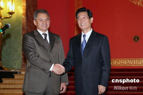 圖為劉古昌大使與俄緊急情況部部長紹伊古共同出席招待會。中新社發(fā) 田冰 攝