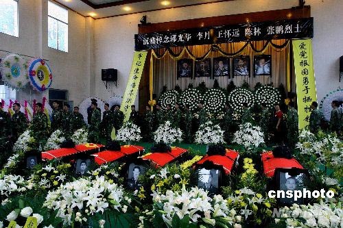 6月13日,四川大地震救援中失事直升機(jī)遇難機(jī)組人員遺體告別儀式在成都市殯儀館舉行,來自軍方及社會各界的人士紛紛前來送別英雄。中新社發(fā) 劉新 攝