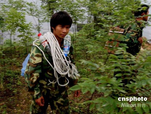 增援官兵趕赴失事直升機(jī)警民遺體營(yíng)地。中新社發(fā) 賈國(guó)榮 攝