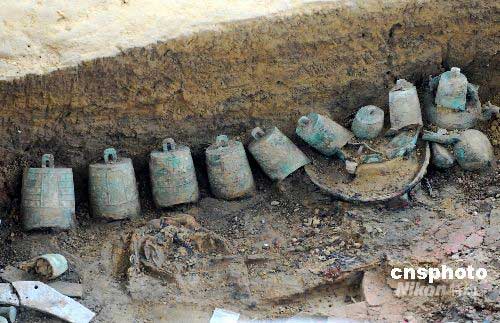 墓室里的青銅編鐘。中新社發(fā) 從啟 攝