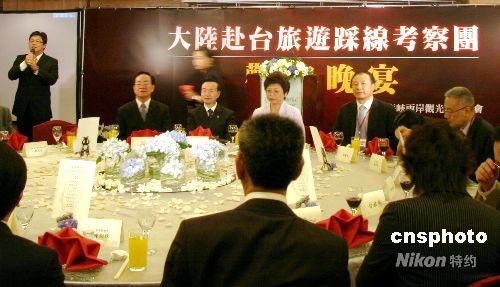 六月十六日,大陸赴臺旅游踩線考察團一行抵達(dá)臺北。當(dāng)晚,臺灣海峽兩岸觀光旅游協(xié)會在臺北市晶華酒店設(shè)歡迎晚宴款待考察團。中新社發(fā) 許曉青 攝