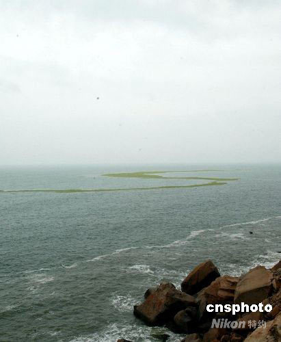 受南方強(qiáng)降雨及氣候變化的影響,近日二00八北京奧運(yùn)會(huì)帆船賽舉辦地青島近海海域涌現(xiàn)大面積海藻并侵入岸邊,青島市海洋漁業(yè)局組織有關(guān)部門及時(shí)進(jìn)行清潔打撈,以保障各國運(yùn)動(dòng)員的訓(xùn)練不受影響。現(xiàn)在每天有四百多艘漁船一千三百余人參與出海打撈,預(yù)計(jì)隨南方降雨量減少及氣候改變,青島海域海藻將消失。中新社發(fā) 曲連遵 攝